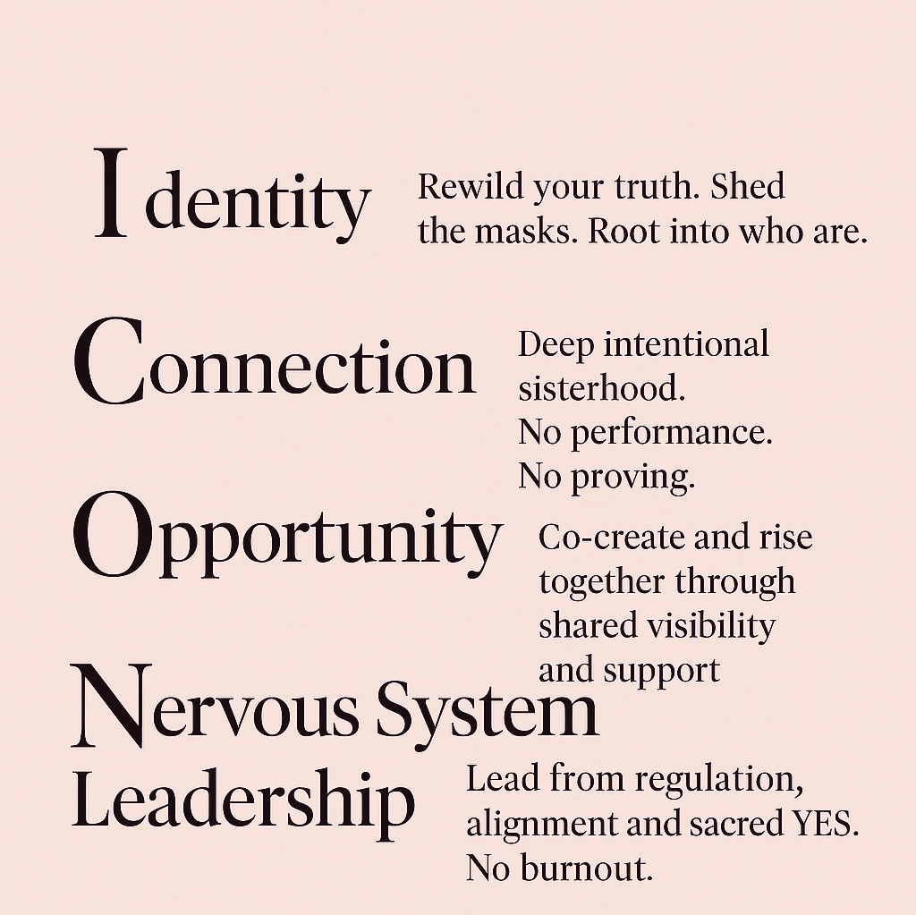 Her Icon Era is not a networking club. It’s not a mastermind. It’s a living, breathing collective of spiritually-led entrepreneurial women reclaiming power, identity, and sacred connection.